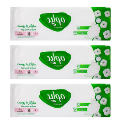 نوار بهداشتی مولپد مدل ضخیم پنبه ای سایز بزرگ مجموعه 3 عددی